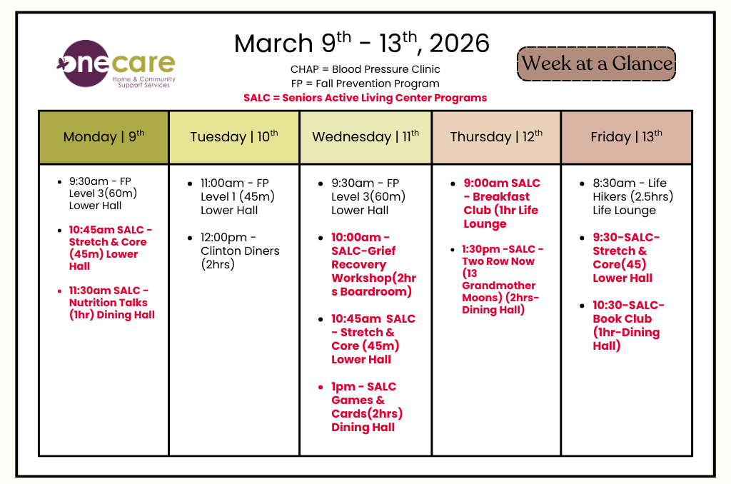 What’s on at ONE CARE’s Senior Active Living Centre: